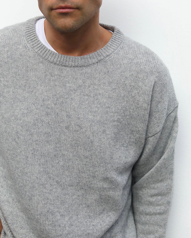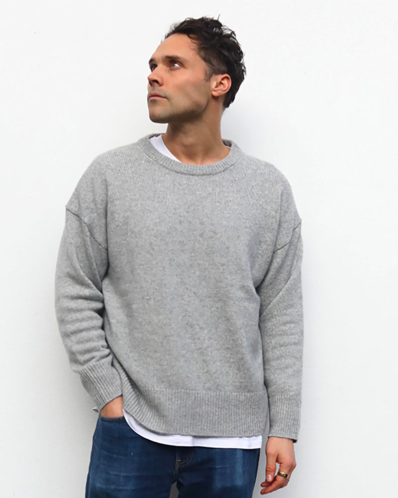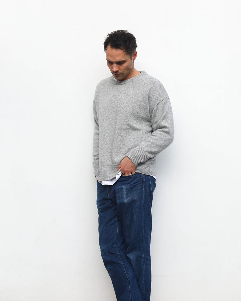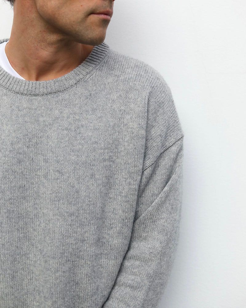 New for Spring 26 we are excited to re-introduce our best-selling, cashmere-merino wool crew neck jumper in silver grey. Designed to be shared by both him & her; a quiet luxury must have!