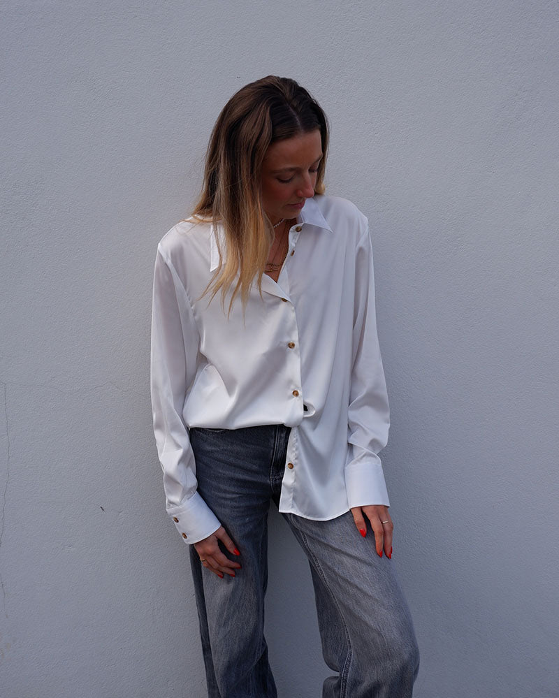 New for AW25, we are excited to release the new Sophie shirt. Made using a soft satin fabric, the Sophie shirt will see you from desk to dinner, and can be dressed up or down!