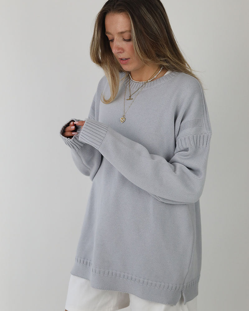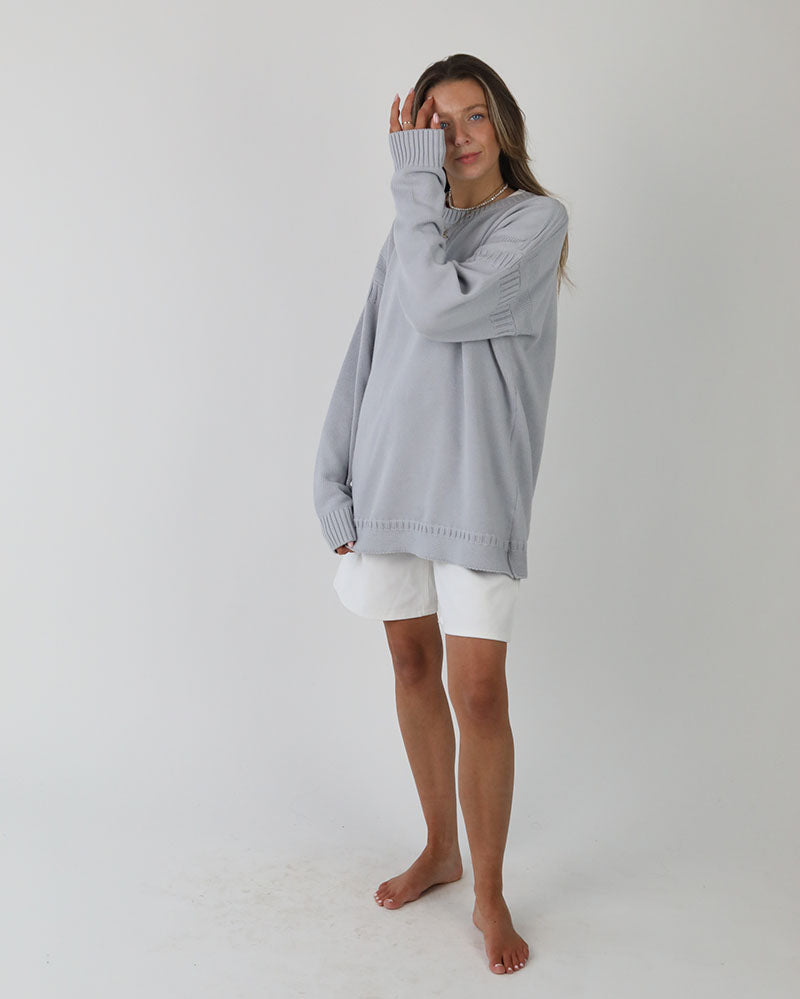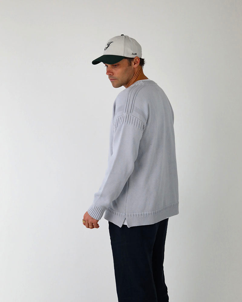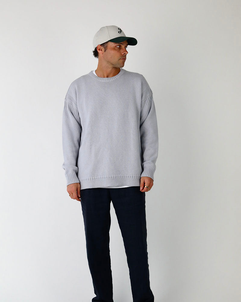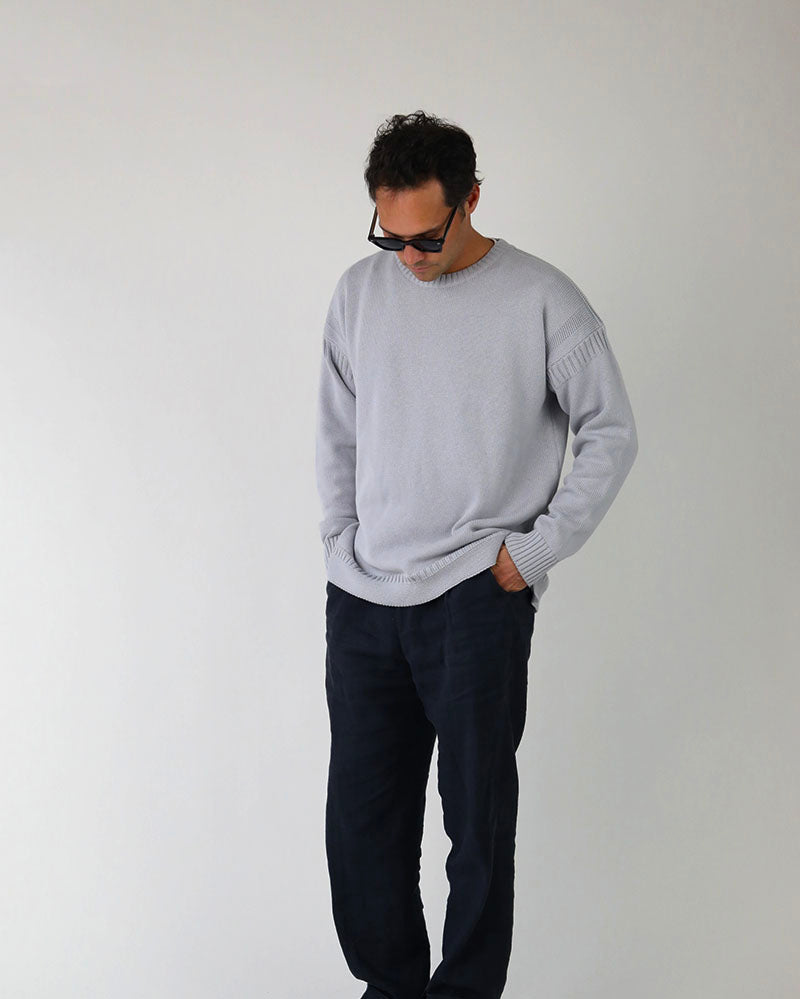 Our signature, Unisex Guernsey Returns for SS26 in a timeless Blue Grey. 100% Cotton.