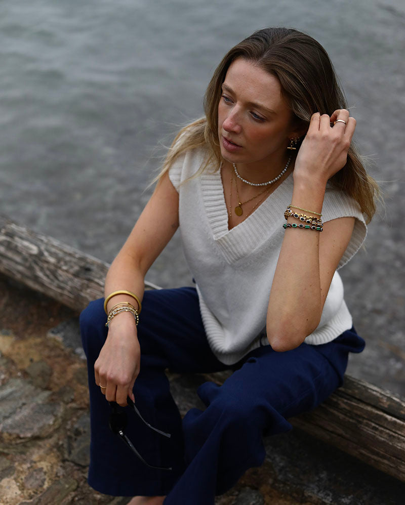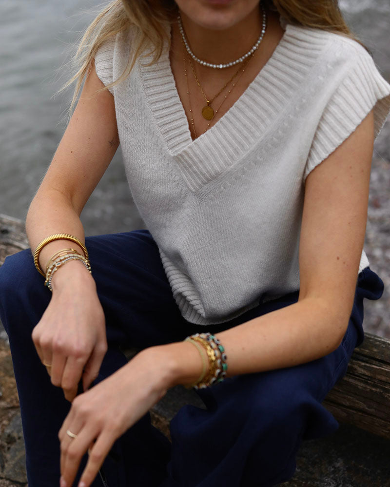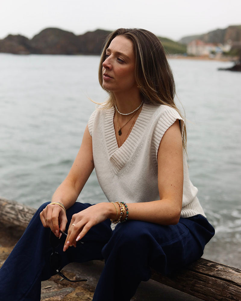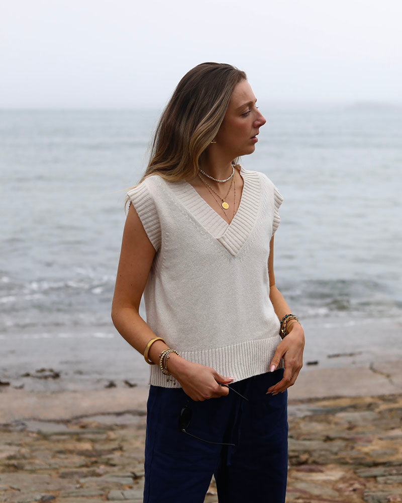 New for Spring Summer 26 we are excited to introduce the New Lizzie vest. Made using ` Soft Blend of Cashmere and Lambswool the Lizzie is the Ultimate Trans-seasonal Staple Designed to be Worn from Work to Weekends.